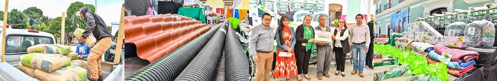 Entre los artículos que el alcalde Santos Cedillo entregó, se encuentran butacas, calentadores solares, colchonetas y cobijas, además de balones y uniformes deportivos, láminas de plastiteja, tubo para drenaje, bultos de cemento, botes de pintura y diversos apoyos económicos.