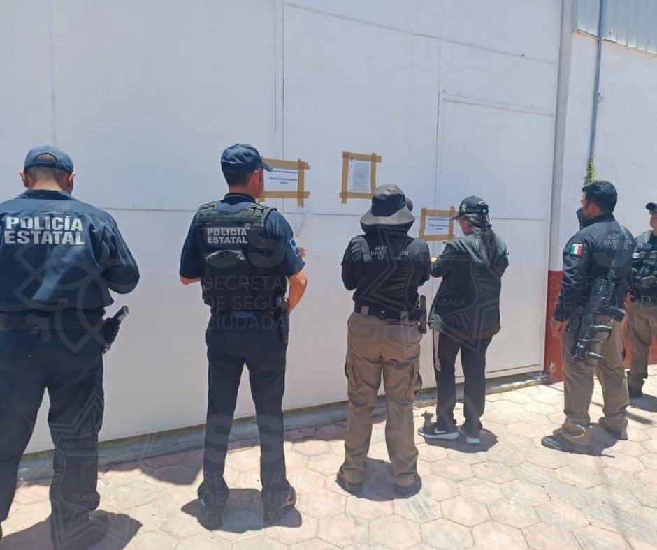 La Policía Federal Ministerial (PFM) de la Agencia de Investigación Criminal (AIC) y peritos especializados en diferentes materias, cumplimentaron el cateo, en el que aseguraron un inmueble, un tractocamión, una caja seca, un inhibidor de señal de 22 antenas, una compresora, placas de circulación de autotransporte federal, viniles de identificación de vehículos, troqueles, láminas de identificación, entre otras cosas.