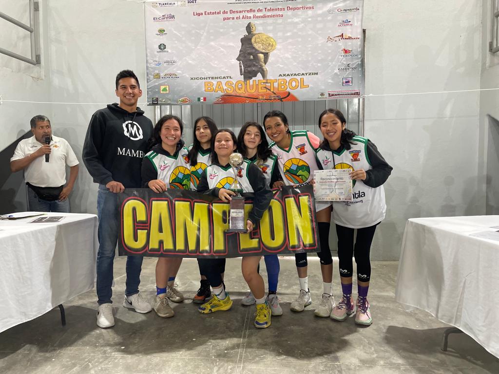 ManuelRojas.- Las jugadoras del selectivo de baloncesto de la ciudad de Huamantla, del club colibrís: #2Marion Flores, #14 Nadia García, #11 Ángela Rivera, #10 Zafiro Zarate, # 7 Loreta Mendez y #8 Jade Baez, jugaron la final de la liga estatal de desarrollo de talentos para el alto rendimiento contra el representativo de Yahuquemecan, finalizando con un marcador final de 35-10 ganando Huamantla.