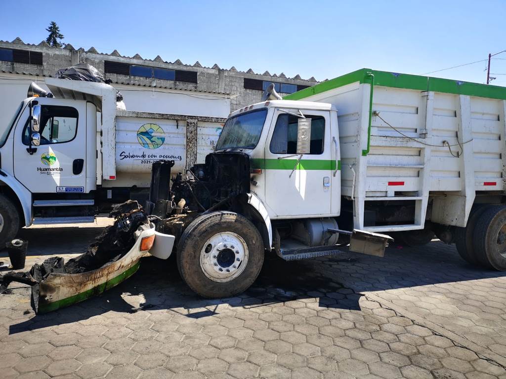 DebatePúblico.- Elementos de la Coordinación de Protección Civil de Huamantla, con el apoyo de trabajadores de la Dirección de Servicios Públicos municipales, sofocaron un incendio en una unidad de recolección de basura.