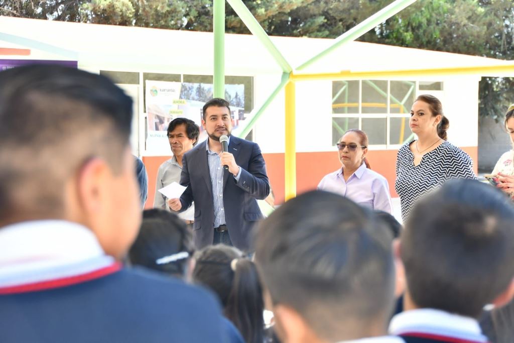 Ante padres de familia y alumnos de la institución, el Edil de Huamantla, Salvador Santos, adelantó que su gobierno busca impulsar siempre acciones que aporten al desarrollo académico de las y los niños de Huamantla.