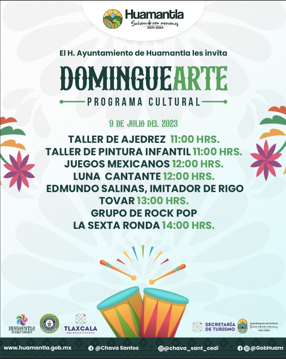 DebatePúblico.- El H. Ayuntamiento de Huamantla que preside Salvador Santos Cedillo, a través de la Coordinación de Cultura, presentarán una cartelera atractiva este 9 de julio con el programa “Dominguearte”