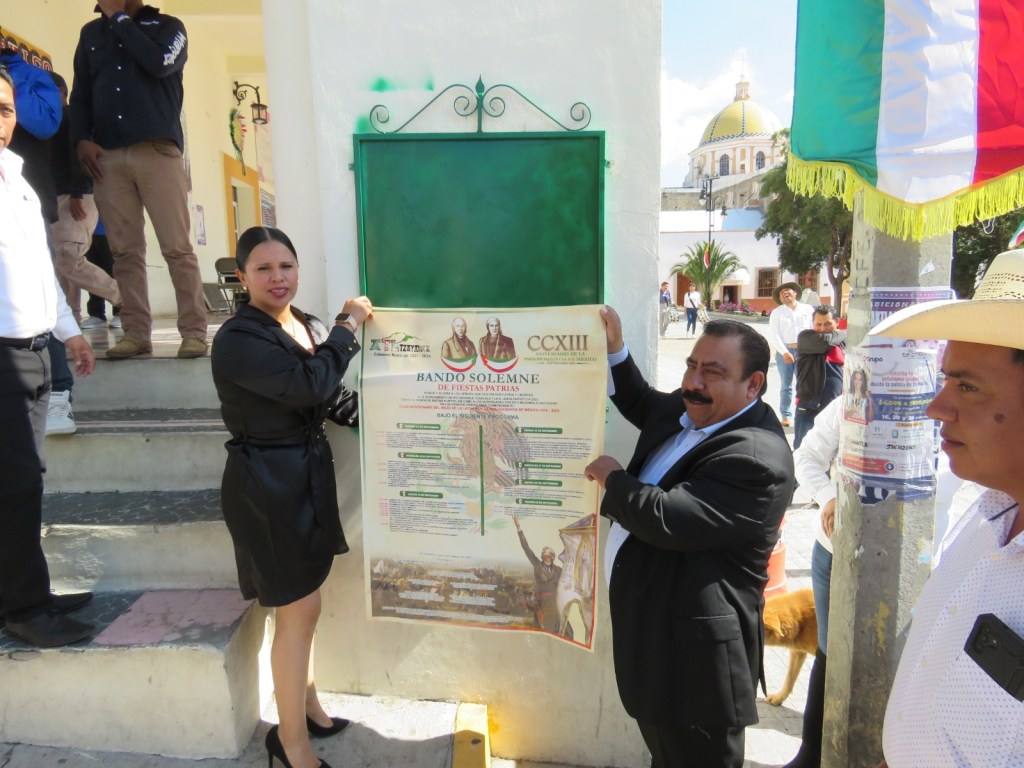ManuelRojas.- El presidente municipal de Atltzayanca, Gustavo Parada Matamoros e integrantes del Cabildo colocaron los Bandos Solemnes en diferentes puntos de la cabecera municipal, la mañana de este viernes primero de septiembre, dando inicio a las actividades del mes de septiembre, para conmemorar el 213 aniversario del inicio del movimiento que logró la Independencia de México.