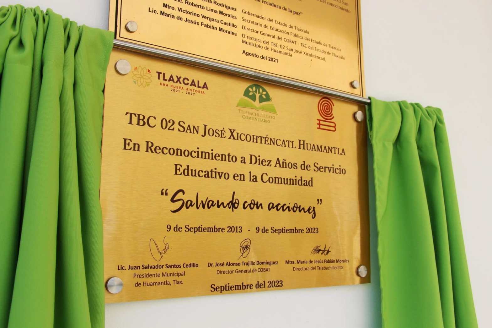 Autoridades municipales y académicas develaron una placa en el Telebachillerato 02 de Xicohténcatl, misma que fue donada por el H. Ayuntamiento para conmemorar los diez primeros años de la institución que se fundó un 9 de septiembre del año 2013, y que ha impulsado la educación Media Superior en jóvenes de ésta y otras comunidades cercanas.