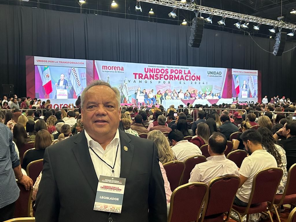 ManuelRojas.- El diputado federal Alejandro Aguilar López, participó en la tercera sesión ordinaria del Consejo Nacional: Unidos por la Transformación; durante el cual refrendó su compromiso y acompañamiento al Proyecto de Nación rumbo al 2024, y atestiguó la entrega del nombramiento a Claudia Sheinbaum, como Coordinadora Nacional de la Defensa de la Cuarta Transformación.