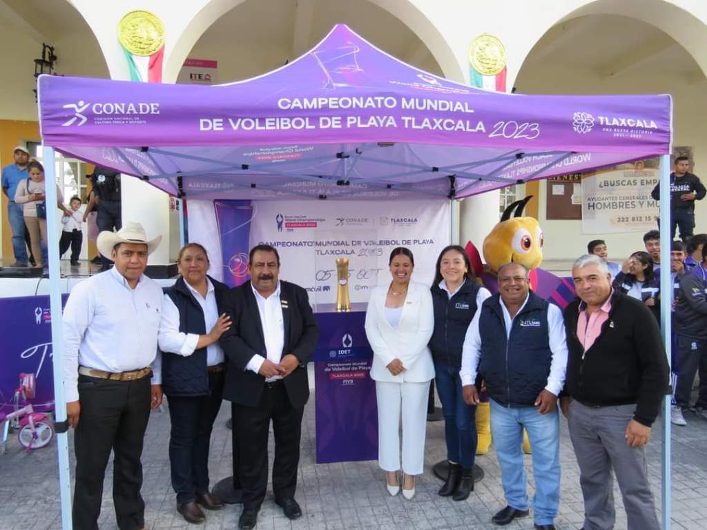 ManuelRojas.- El presidente municipal de Atltzayanca, Gustavo Parada Matamoros, fue el anfitrión del evento en el que se presentó el trofeo que se les entregará a los ganadores del Campeonato Mundial de Voleibol de Playa Tlaxcala 2023.