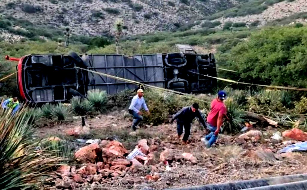 DP.- 10 muertos y 18 heridos dejó como saldo preliminar el desbarrancamiento de un camión de pasajeros en San Luis Potosí.