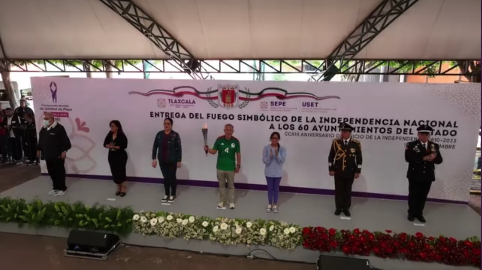 ManuelRojas.- El Municipio de Atltzayanca estuvo presente en la entrega del fuego patrio, que realiza el Gobierno Estatal, encabezado por el presidente municipal, Gustavo Parada Matamoros.