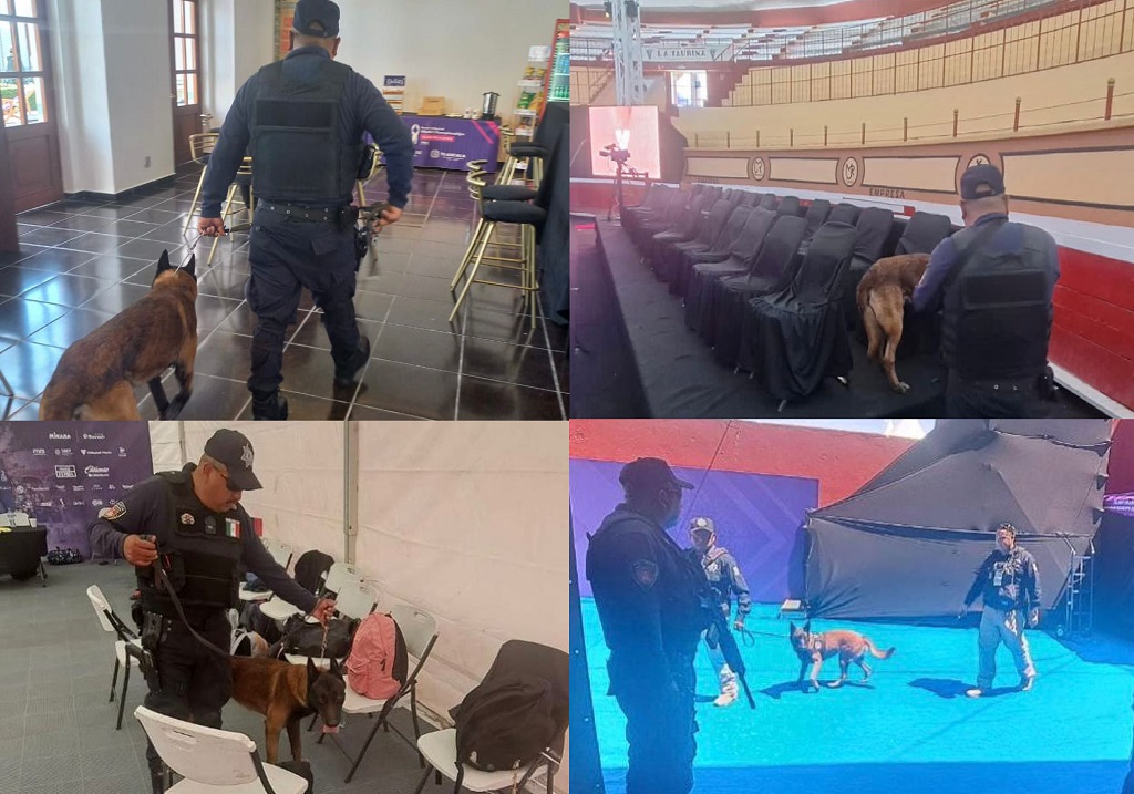 DebatePúblico.- Elementos de la Dirección de Seguridad Pública de Huamantla, a través de la Unidad Canina K9, realizaron un operativo de seguridad en la Plaza de Toros “La Taurina”, previo a los encuentros que se llevarán a cabo como parte del Campeonato Mundial de Voleibol de Playa Tlaxcala 2023.