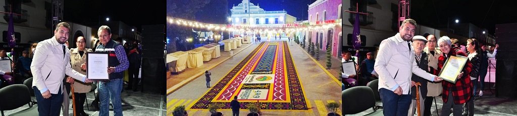 Teniendo como escenario el Parque Juárez, el presidente municipal felicitó a todos los artistas, artesanos y organizaciones alfombristas, ya que con su talento iluminan y recrean paisajes multicolores llenos de textura que reflejan las tradiciones y cultura de este Pueblo Mágico.