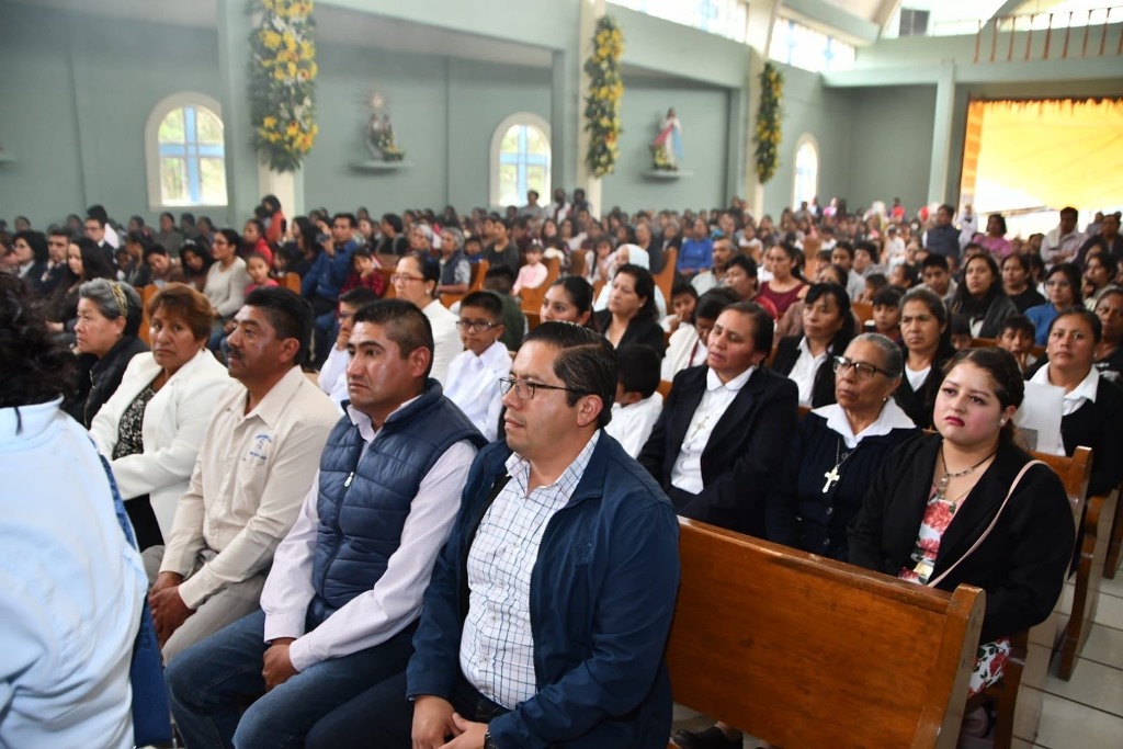 DebatePúblico.- El gobierno municipal de Huamantla que encabeza Salvador Santos Cedillo, realizó este día la entrega del remozamiento de la nueva parroquia del pueblo de Benito Juárez.