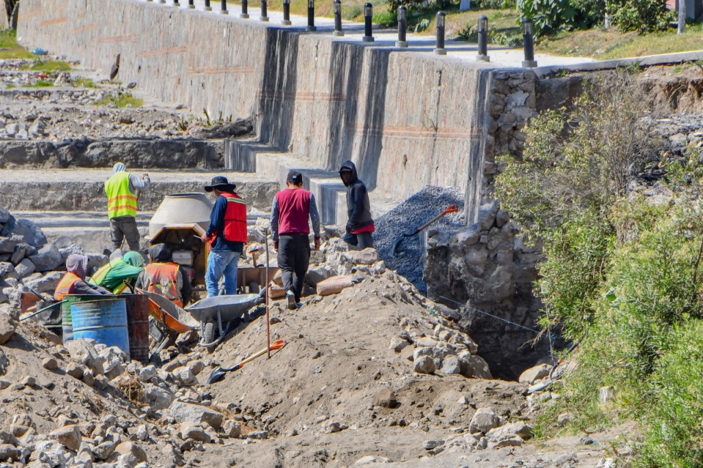 Para abordar esta situación, las labores en el canal involucran una serie de acciones clave que incluyen el desazolve del material colapsado y su posterior demolición, así como la implementación de muros de mampostería y concreto ciclópeo.