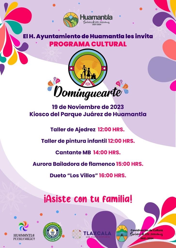 DebatePúblico.- Como parte de las actividades culturales que impulsa el H. Ayuntamiento de Huamantla, que preside Salvador Santos Cedillo, este fin se espera la presencia de las familias al programa “Dominguearte”, teniendo como escenario principal el Kiosco del Parque Juárez.