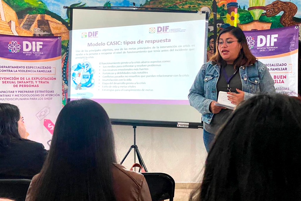 DebatePúblico.- Con el propósito de adquirir las habilidades para actuar oportunamente ante situaciones relacionadas a la salud mental y emocional, personal del Sistema Municipal para el Desarrollo Integral de la Familia (DIF) de Huamantla, recibió la capacitación denominada “Primeros Auxilios Psicológicos”.