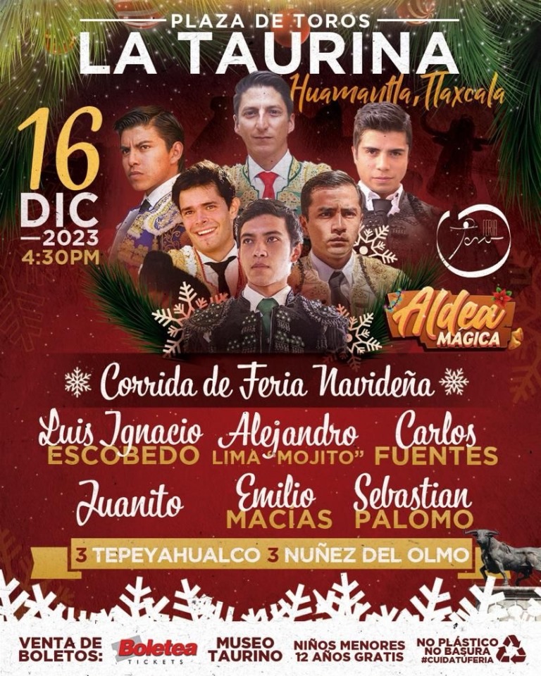Por su parte, el coordinador de Arte y Cultura Taurina, Joaquín Angelino de Arriaga, anunció que esta “Aldea Mágica 2023”, también contará con importantes eventos como el encierro estilo Pamplona, el cual se realizará el próximo 16 de diciembre, a las 10:00 horas con un circuito en calles de la ciudad; por la tarde la corrida de feria navideña, en la Plaza de Toros “La Taurina”; así como exposiciones y presentaciones de libros.