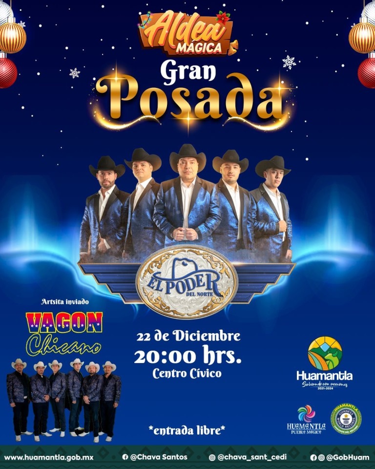 Isabel Aquino Romero mencionó que como parte de las presentaciones artísticas, destaca “La Posada Navideña” con la presencia de “Vagón Chicano” y “El Poder del Norte”, esto para el día 22 de diciembre en el Centro Cívico, a las 21:00 horas.