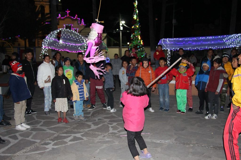 Con gran ambiente, luces y unión familiar, vecinos de estas comunidades convivieron con dulces, pan, ponche, aguinaldos y piñatas, además de que con estas actividades se fortalecen los valores y la sana convivencia.