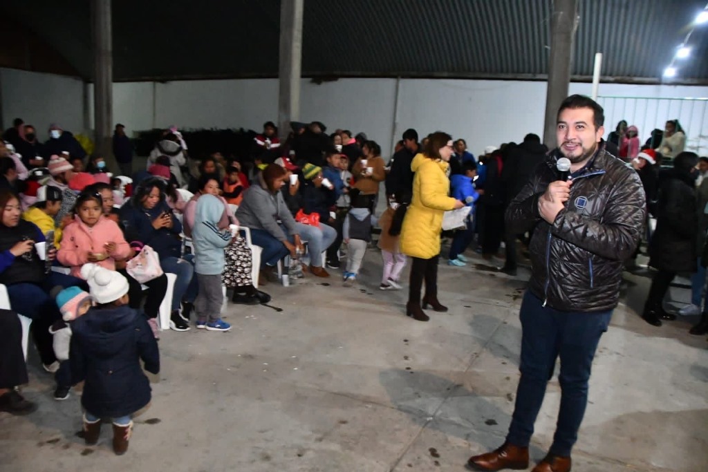 Personal del gobierno municipal realizó la entrega de ponche, tamales y aguinaldos, que llenaron de felicidad a las niñas y niños presentes.