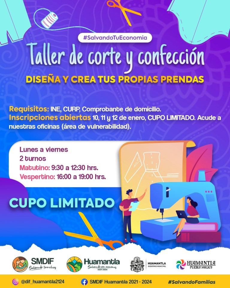 DebatePúblico.- El Sistema Municipal para el Desarrollo Integral de la Familia (SMDIF) de Huamantla, a través de su programa «Salvando tu Economía», extiende la invitación a la población a participar en el Taller de Corte y Confección, una oportunidad para desarrollar habilidades en el diseño y confección de prendas de vestir.