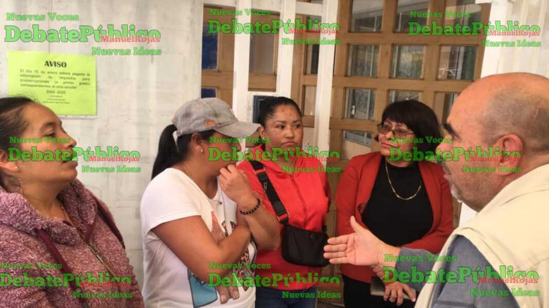 ManuelRojas.- Tras la decisión de Madres y Padres de familia de los alumnos de la Telesecundaria Fernando Montes de Oca, de cerrar las instalaciones para exigir que la directora les hiciera caso ante la permanente ausencia de dos maestros, acudió el jefe de sector de la USET, Salvador Bazán Velazco, para entablar el diálogo con los afectados.