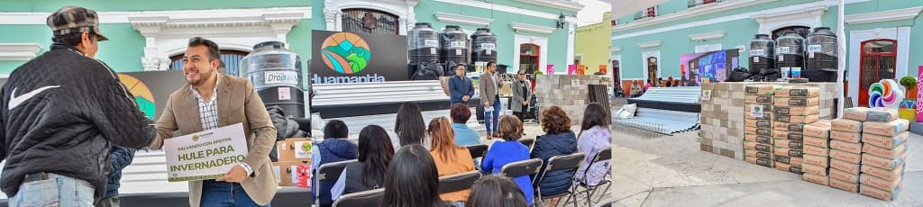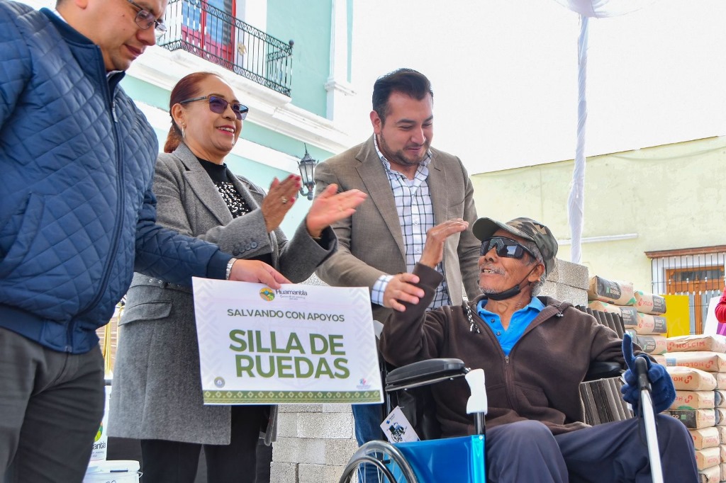 Este día fueron entregadas láminas galvanizadas, implemento para invernadero, silla de ruedas, botes de pintura, computadora e impresora, malla sombra, tinacos para agua, proyector, tambores, trompetas, laptops y material para construcción, ayudas que contribuyen a generar bienestar en las familias huamantlecas.