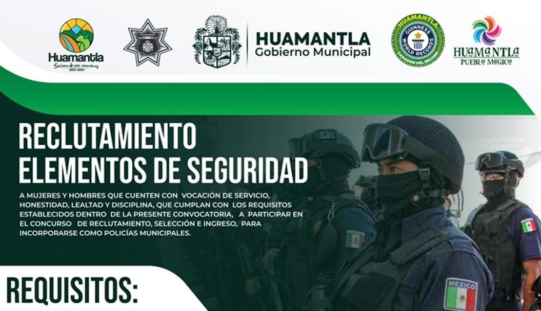 DebatePúblico.- El gobierno de Huamantla, a través de la Dirección de Seguridad Pública, Tránsito y Protección Civil, convoca a mujeres y hombres a participar en la convocatoria para el proceso de selección e ingreso al cuerpo de seguridad, a fin de servir a su municipio con lealtad, honestidad y compromiso.