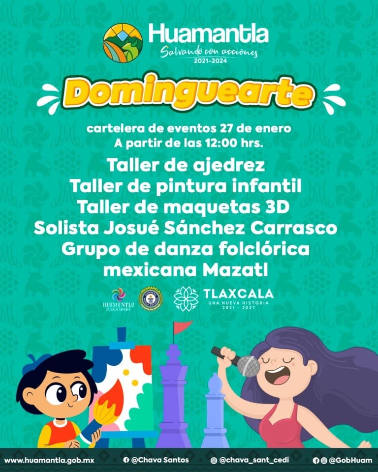 DebatePúblico.- Como parte de las actividades culturales de cada domingo que se han tenido la coordinación de Cultura Municipal de Huamantla, el programa “Dominguearte” ha preparado una cartelera para todas las edades.