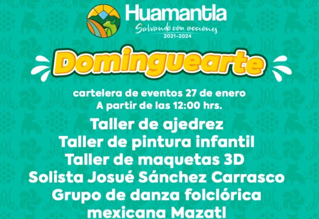 DebatePúblico.- Como parte de las actividades culturales de cada domingo que se han tenido la coordinación de Cultura Municipal de Huamantla, el programa “Dominguearte” ha preparado una cartelera para todas las edades.