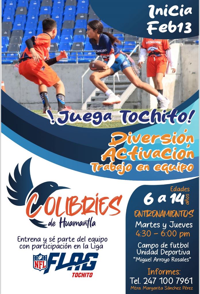 DebatePúblico.- La Coordinación de Deporte de Huamantla, invita a inscribirse al equipo de Tochito “Colibríes”, ya que por primera vez se contará con una escuela de esta disciplina en el municipio.