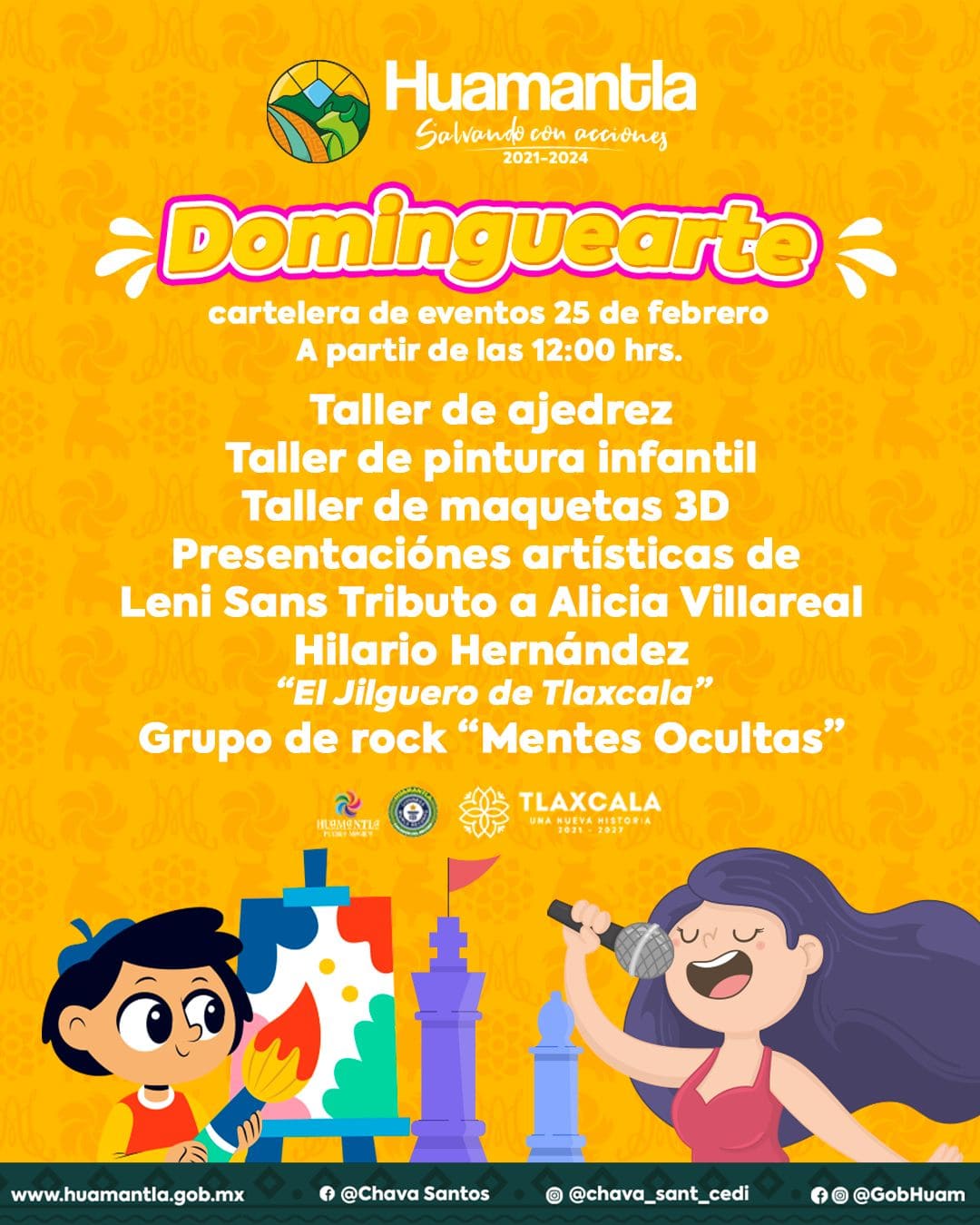 DebatePúblico.- El H. Ayuntamiento de Huamantla, a través de la Coordinación de Cultura, invita a toda la ciudadanía a participar en el programa cultural «Dominguearte», una iniciativa que busca promover el arte y la cultura en un ambiente familiar y acogedor en el Parque Juárez.