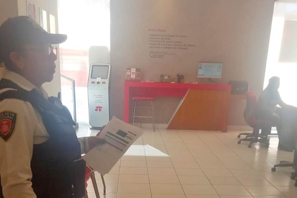DebatePúblico.- La tarde de este lunes se recibe una llamada a los números de emergencia, donde se reporta la presencia de presuntos asaltantes al interior de una institución bancaria, por lo que elementos de la policía municipal, se trasladan de manera inmediata al lugar.