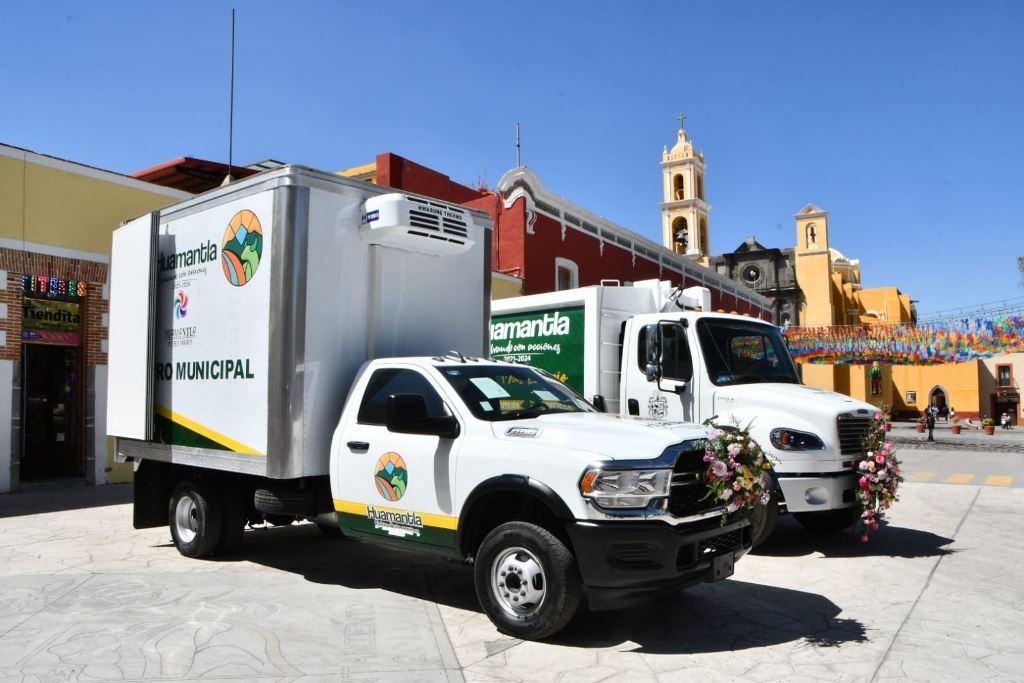 Frente a la Presidencia Municipal, Santos Cedillo, realizó la entrega simbólica de estas unidades que permitirán mantener un entorno más limpio y seguro para la población; por otro lado, el rastro municipal ahora cuenta con un camión equipado para ofrecer un mejor servicio y más higiénico a los carniceros del municipio.