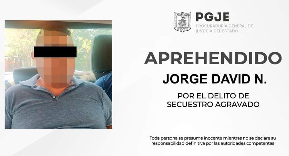 DebatePúblico por Manuel Rojas.- Derivado de los trabajos de inteligencia, agentes de la Policía de Investigación adscritos a la Fiscalía Especializada en Combate al Secuestro (FECS) de la Procuraduría General de Justicia del Estado (PGJE) lograron la aprehensión de Jorge David N., por el delito de secuestro agravado.