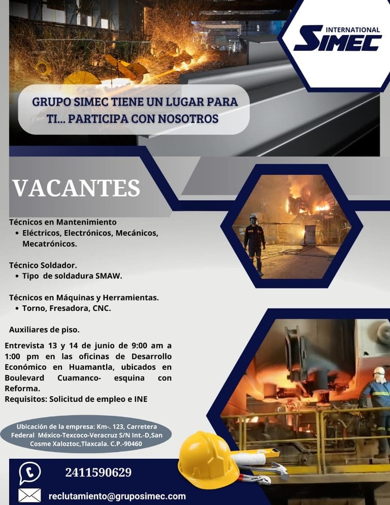DebatePúblico.- El H. Ayuntamiento de Huamantla, encabezado por Luz María Calva Pimentel, en colaboración con la empresa Simec, líder en la producción y procesamiento de acero, anuncian oportunidades de empleo.