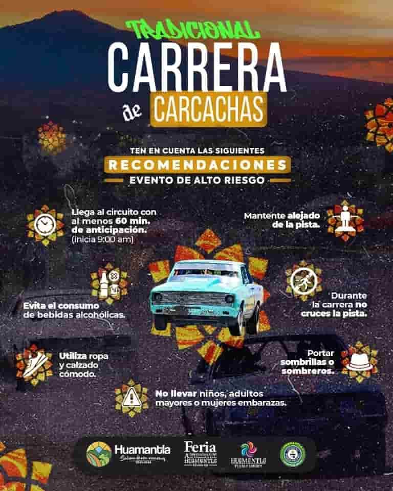 DebatePúblico.- Uno de los eventos más emocionantes de la Feria Internacional del Arte Efímero y la Dalia Huamantla 2024, es la tradicional Carrera de Carcachas; por ello, la Coordinación de Protección Civil de Huamantla, emite las siguientes recomendaciones para garantizar una experiencia segura y agradable para todos los asistentes.