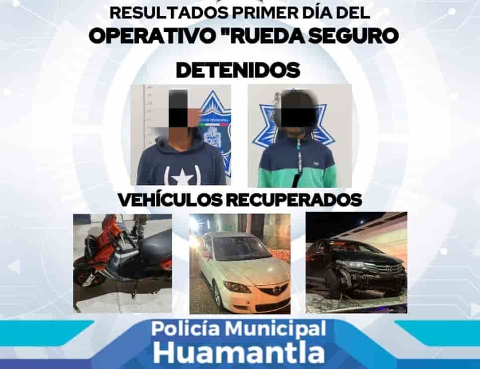 DebatePúblico.- El operativo “Rueda Seguro”, implementado por la Dirección de Seguridad Pública de Huamantla, tuvo un exitoso inicio al recuperar tres vehículos con reporte de robo durante su primer día. Gracias a los recorridos de prevención y vigilancia ejecutados por la policía municipal, se logró asegurar una motocicleta y dos automóviles.