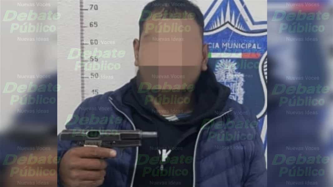 DebatePúblico.- Elementos de la Dirección de Seguridad Pública de Huamantla detuvieron a un hombre, identificado como Óscar N., quien portaba un arma de fuego sin poder acreditar su legal posesión.