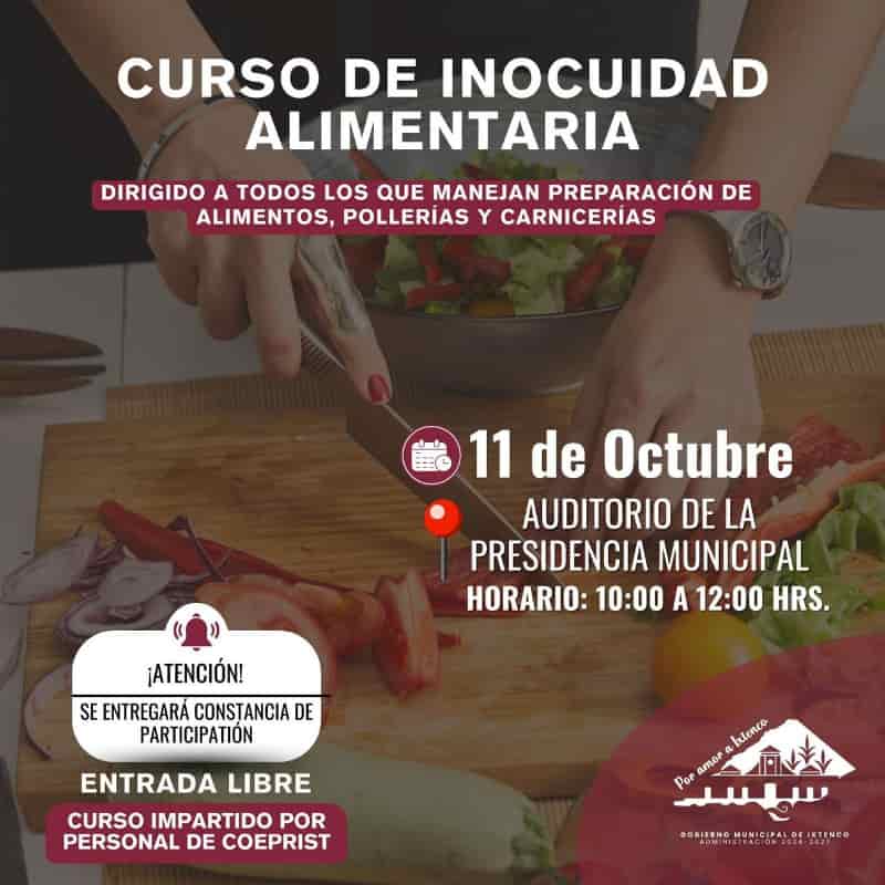 DebatePúblico.- El Gobierno Municipal de Ixtenco, que encabeza Aline Lazo Caballero, en coordinación con la Comisión Estatal para la Protección contra Riesgos Sanitarios de Tlaxcala, llevarán a cabo la impartición de un curso de capacitación dirigido a las personas que vendan y/o preparen productos alimenticios.