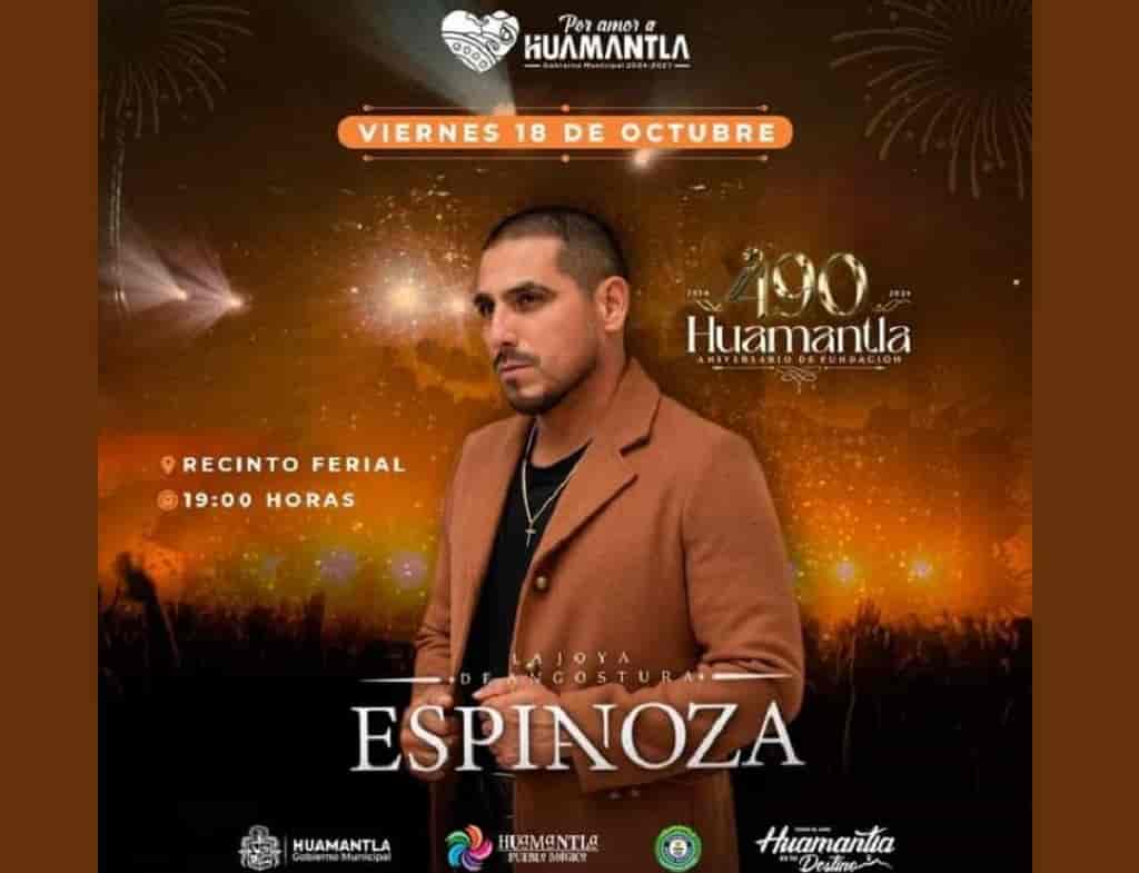 DebatePúblico.- Ante la alta expectativa generada entre la población, y para establecer las condiciones de comodidad y seguridad que se requieren, el Ayuntamiento de Huamantla informó que el concierto gratuito del cantante Espinoza Paz se llevará a cabo el próximo viernes 18 de octubre en el Recinto Ferial, a partir de las 19:00 horas.