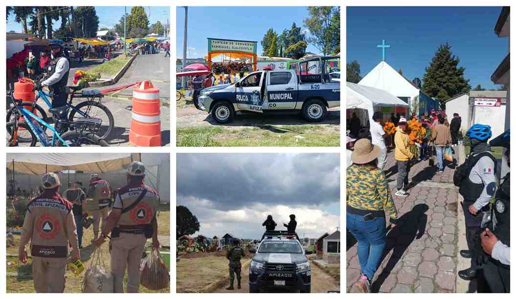 La Dirección de Seguridad Pública y Vialidad, a cargo del capitán José Ramón Jacques Mena, cuenta con elementos del escuadrón ciclista, de vialidad a bordo de moto patrullas, recursos técnicos y tácticos que se administraron estratégicamente con el objetivo de prevenir la comisión de los delitos, faltas administrativas o al reglamento de tránsito, así como cualquier ilícito que sancionen las leyes penales y así garantizar la tranquilidad y la paz social de la ciudadanía apizaquense en las festividades de Día de Muertos 2024.