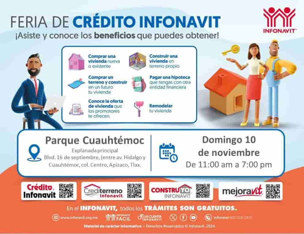 DebatePúblico.- El Gobierno Municipal de Apizaco y el Instituto del Fondo Nacional de la Vivienda para los Trabajadores (Infonavit) invitan a las y los derechohabientes a participar en la próxima Feria de Crédito, donde podrán conocer y acceder a diversas opciones de financiamiento para mejorar o adquirir su vivienda.