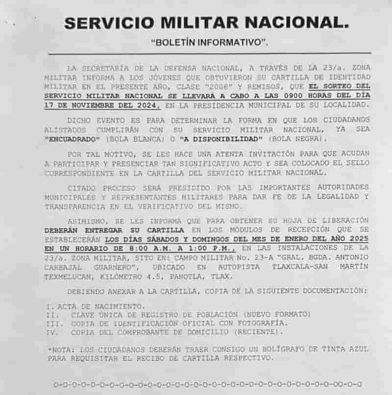 MILITAR INFORMA A LOS JÓVENES QUE OBTUVIERON SU CARTILLA DE IDENTIDAD