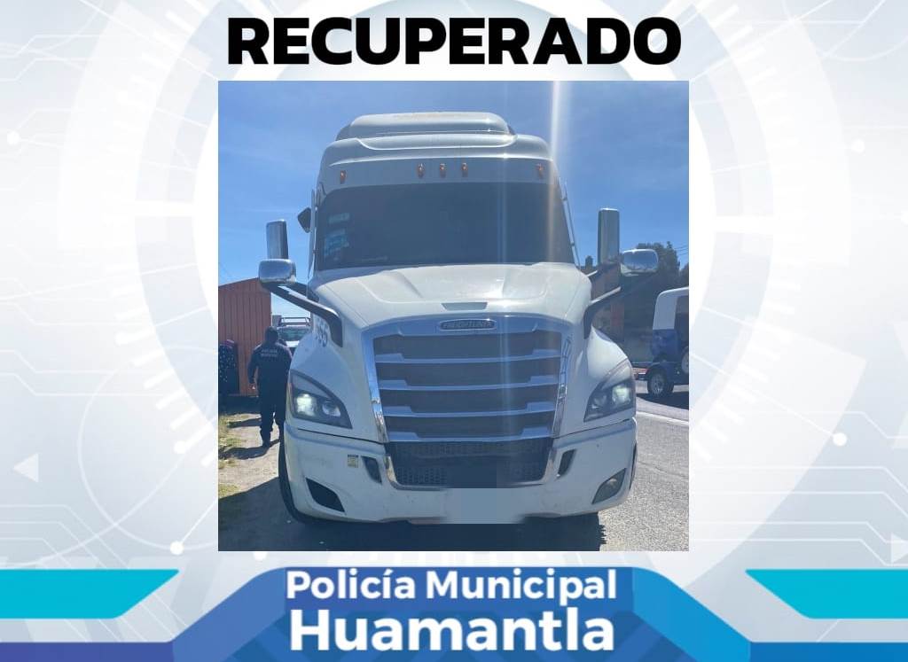 DebatePúblico.- La Policía Municipal de Huamantla ubicó un tractocamión de la marca Freightliner, modelo 2022, color blanco, con placas de circulación 07AR4F, del Estado de México, que había sido reportado como robado ante el sistema de emergencia.