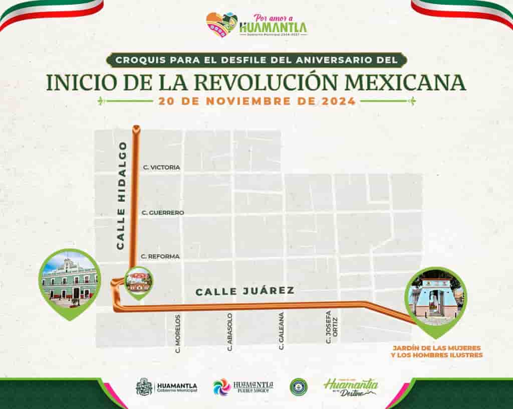 DebatePúblico.- El Gobierno Municipal de Huamantla informa que, con motivo del desfile por el 114 Aniversario de la Revolución Mexicana, este miércoles 20 de noviembre habrá cierre de calles y desvíos en la circulación vehicular y peatonal en el centro de la ciudad.