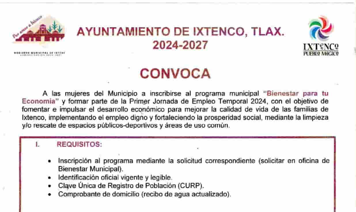 *Se abrirá la convocatoria a mujeres para acceder al programa municipal de empleo temporal, la recepción de solicitudes y documentación se llevará a cabo del 27 noviembre al 04 de diciembre.