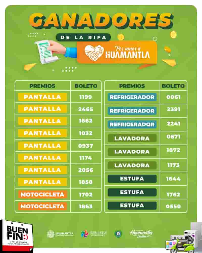 De una urna transparente se seleccionaron los ganadores de las ocho pantallas, tres estufas, tres refrigeradores, tres lavadoras y dos motocicletas, los cuales serán entregados a partir del próximo lunes de 10 a 16:00 horas, en las oficinas de Tesorería, ubicadas en el Callejón Margarita Maza de Juárez.