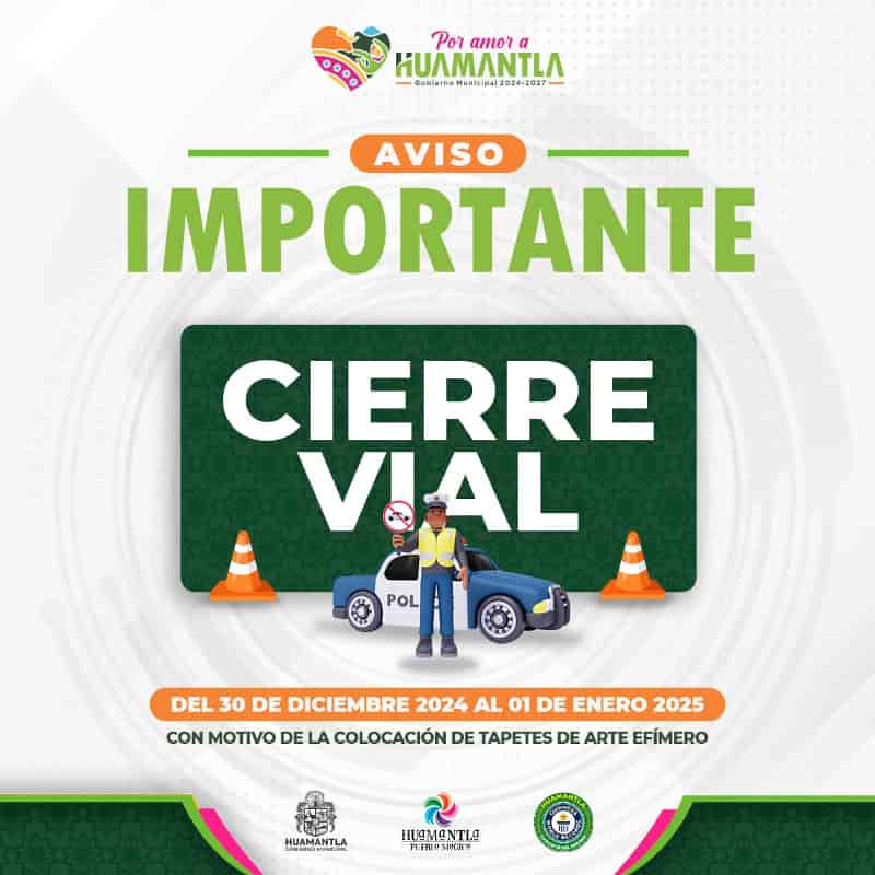 DebatePúblico.- A partir de este lunes 30 de diciembre comenzará el cierre de las calles en las que los artesanos del Pueblo Mágico crearán tapetes y alfombras, como parte de la celebración en honor al Señor del Convento, por lo que el Gobierno Municipal de Huamantla invita a la población en general y a los visitantes a planificar sus traslados y tomar rutas alternas para evitar contratiempos.