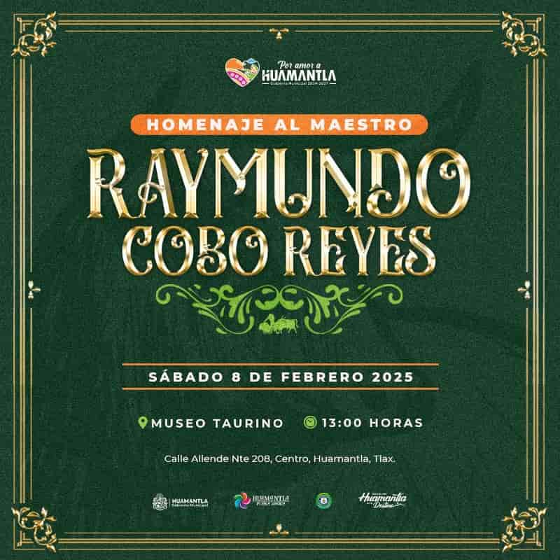 DebatePúblico.- El Gobierno Municipal de Huamantla, a través de la Coordinación de Cultura y la Comisión de Arte Taurino del Pueblo Mágico, extiende una cordial invitación a la comunidad para participar en el homenaje al Maestro Raymundo Cobo Reyes por su legado artístico y taurino.