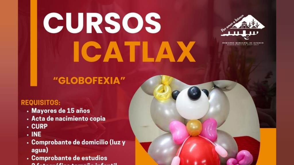 DebatePúblico.- El Gobierno Municipal de Ixtenco, que encabeza Aline Lazo Caballero, en colaboración con el Instituto de Capacitación para el Trabajo del Estado de Tlaxcala (ICATLAX), anuncia el inicio de nuevos cursos para Globofexia, para manipular y modelar los globos hasta lograr que adopten una forma determinada, como la de un animal u objeto.