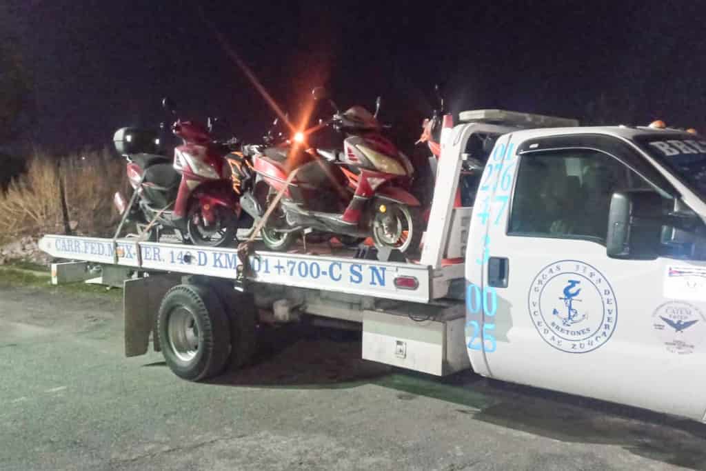 Lo anterior, derivado de que los conductores de estas unidades cometieron infracciones diversas relacionadas con la portación de casco, placas, licencia, entre otras, por lo que se procedió a realizar el aseguramiento de estas unidades para que sea la autoridad correspondiente la que defina su situación legal.